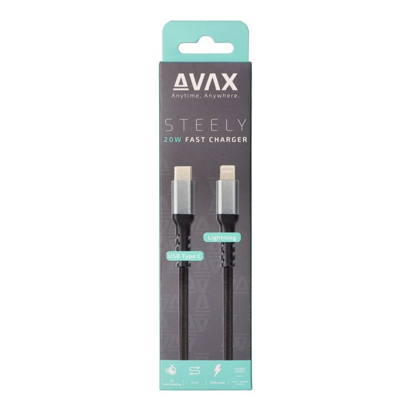 AVAX CB402G STEELY 1,5m 20W Type-C-Lightning gyorstöltő sodorszálas acélszürke adat- és töltőkábel