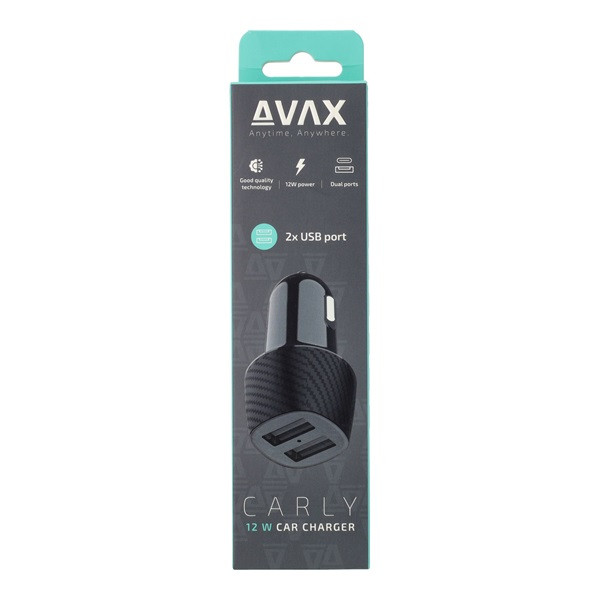 AVAX CC301B CARLY 12W Autós töltő 2x USB A, fekete
