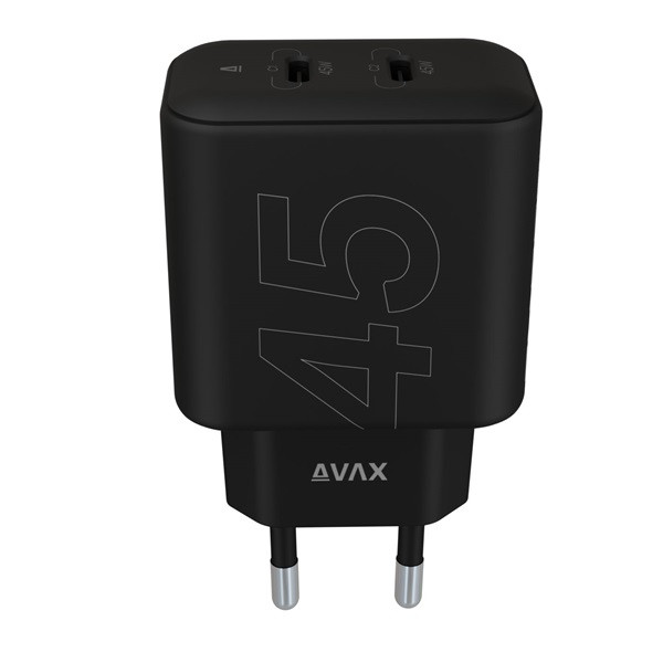 AVAX CH602B SPEEDY+ 45W GaN 2x USB-C PD3.0 fekete gyors töltő adapter