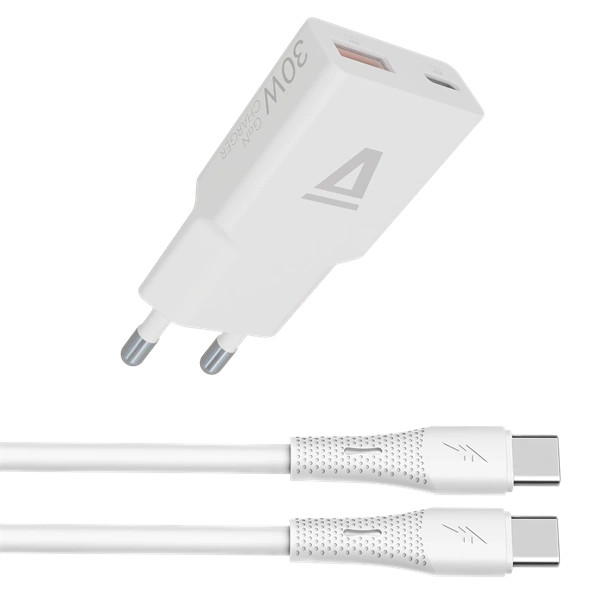 AVAX CH6413 30W GaN töltő és 60W USB-C szilikon kábel csomag, fehér