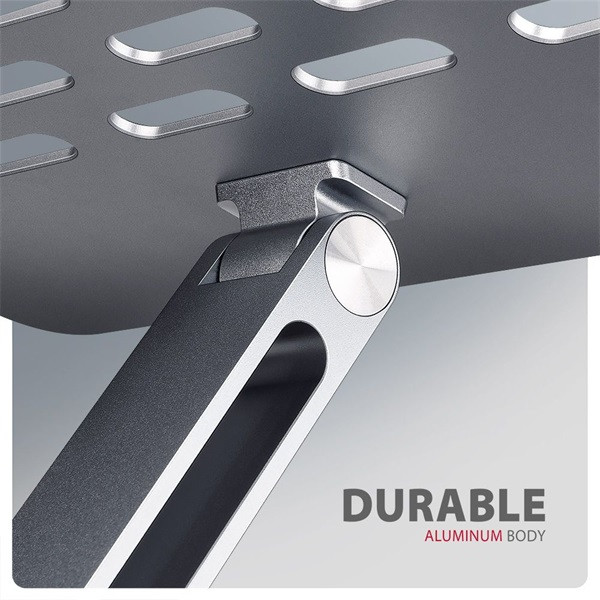 Ennek az állványnak az elegáns kialakítása nemcsak stílusossá teszi íróasztalát, hanem praktikus funkciókat is kínál. Az alap és a hubfedél robusztus alumíniumöntvényekből készült, amelyek passzív hűtést biztosítanak, és garantálják az állvány és a hub hosszú élettartamát és megbízhatóságát. Emellett az alapon található kivágások optimalizálják a laptop hőelvezetését, ami hozzájárul a nagyobb teljesítményhez és a készülék hosszabb élettartamához.
