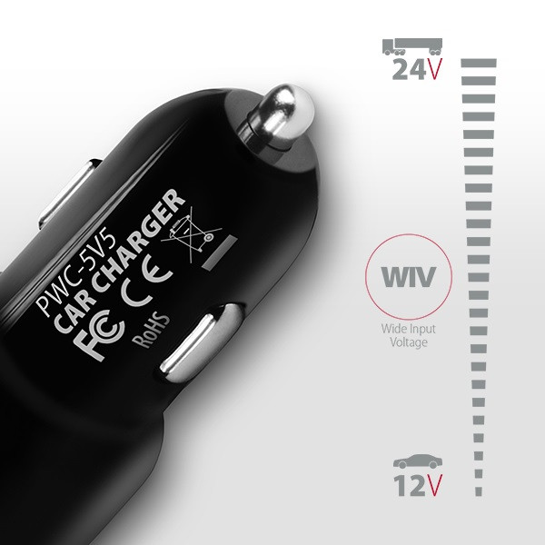 Axagon PWC-5V5 2.4A + 2.4A fekete autós töltő