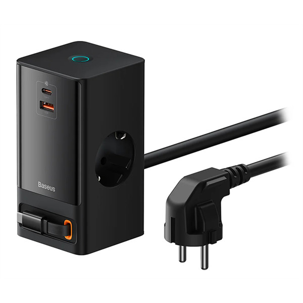 A Baseus PowerCombo Tower 5 az 1-ben töltőállomás egy töltő 4 töltőporttal és 1 visszahúzható gyorstöltő kábellel, amely lehetővé teszi 5 eszköz egyidejű töltését, és letisztultabbá teszi asztalát.