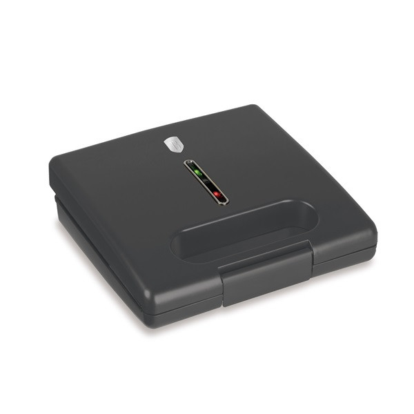 A készülék hűvös tapintású külsővel rendelkezik, ami biztonságos használatot tesz lehetővé. Az automatikus hőmérséklet-szabályozás és a túlmelegedés elleni védelem garantálja, hogy mindig a megfelelő hőfokon süssön. A csúszásgátló lábak és a biztonságos záró kar további stabilitást és kényelmet nyújtanak.