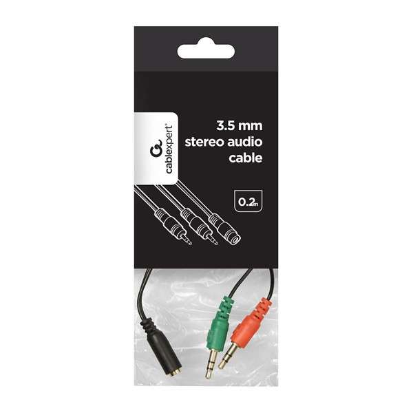 Gembird 20cm 2db Jack stereo 3,5mm -> Jack stereo 3,5mm (4pin) M/F fekete adapter