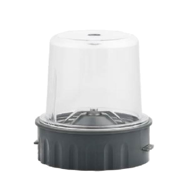 - Keresztbe vágott rozsdamentes acél pengék egy nagy tégelyben;