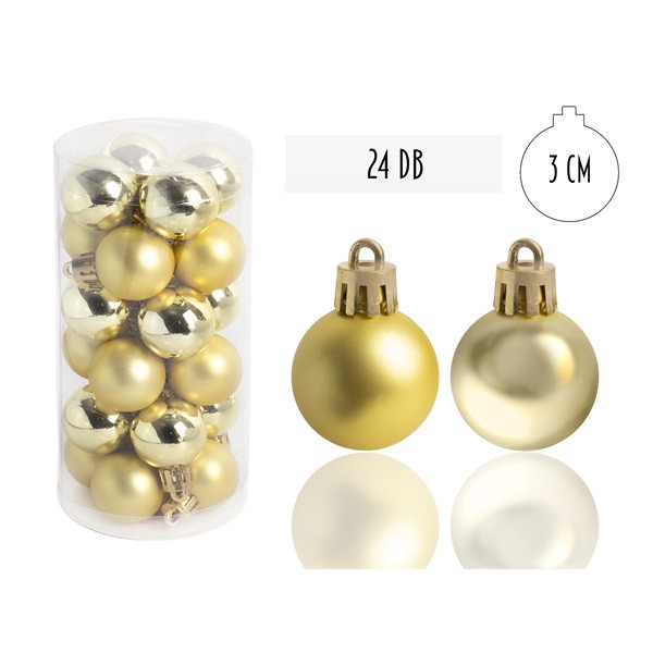 IRIS Karácsonyfa gömb aranysárga, 24 db-os, 3cm