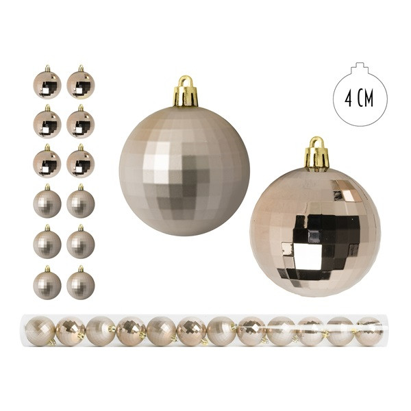 IRIS Karácsonyfa gömb krém ezüst, 12 db-os, 4cm