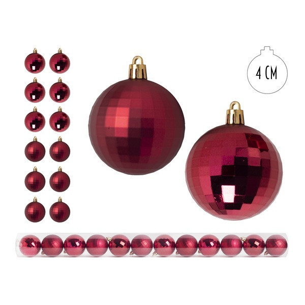 IRIS Karácsonyfa gömb piros, 12 db-os, 4cm