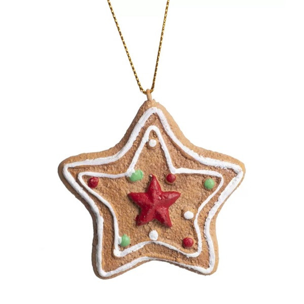 Csillag formájú mézeskalács, akasztós karácsonyi dísz 7 x 8,5cm