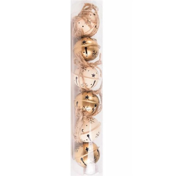 IRIS fém akasztós csengő szettben, 6 darabos, arany és krém, hópihés 4 cm