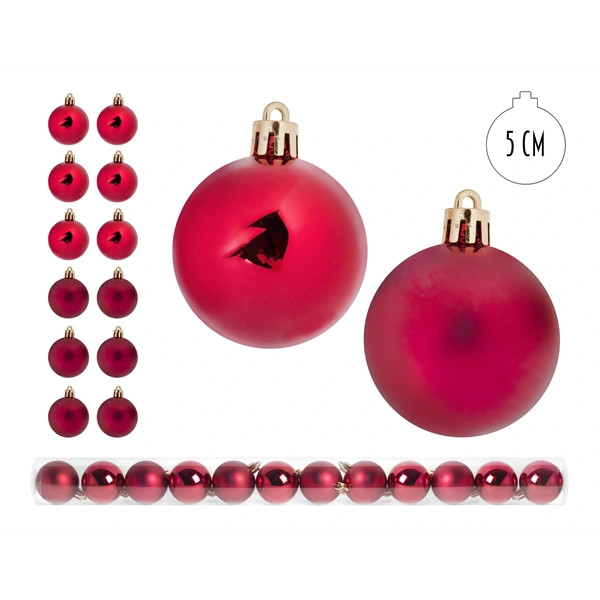 IRIS karácsonyi dísz gömb, szettben, pvc dobozban, 12 darabos, piros 5 cm
