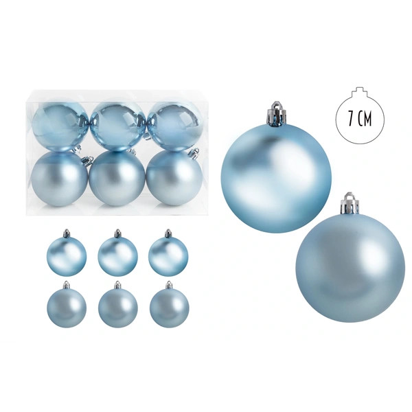 IRIS karácsonyi dísz gömb, szettben, pvc dobozban, 6dbos, azúrkék 7 cm