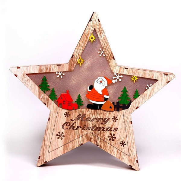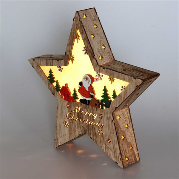 Iris Csillag alakú Télapó mintás/30x30cm/meleg fehér LED-es fa fénydekoráció