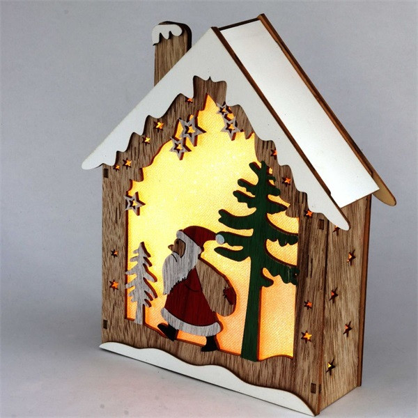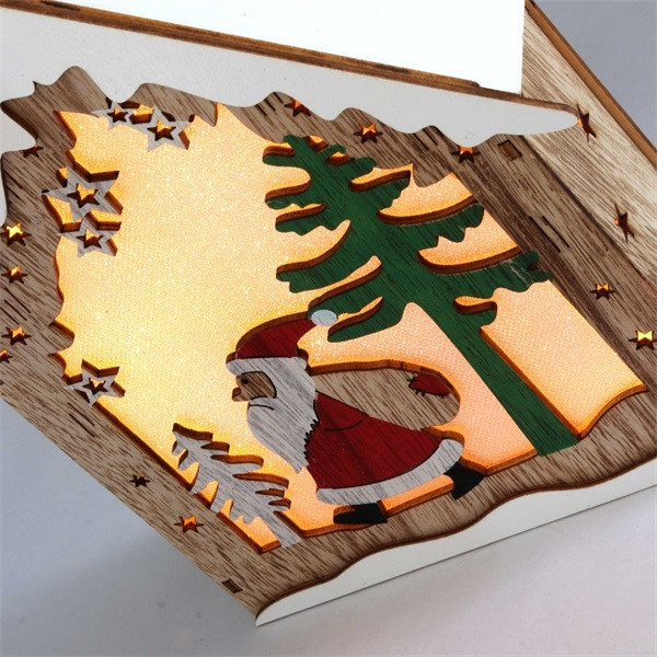 Iris Faház alakú Télapó mintás/18,5x21cm/meleg fehér LED-es fa fénydekoráció