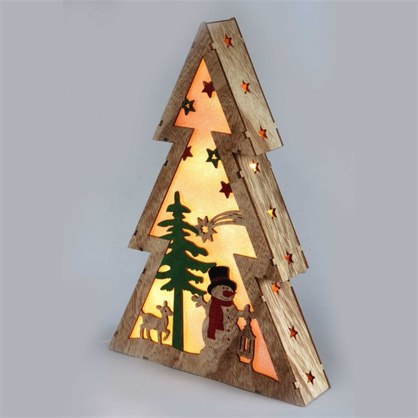 Iris Fenyőfa alakú hóember mintás/20x29,5x4,5cm/meleg fehér LED-es fa fénydekoráció