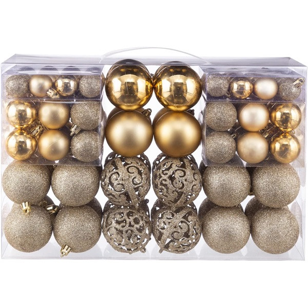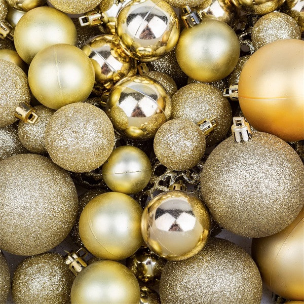 - 100db-os, vegyes kinézetű, gömb formájú karácsonyfadísz