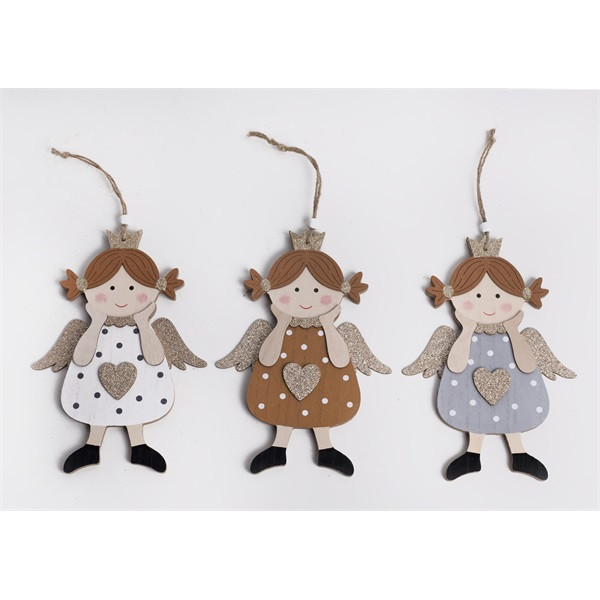 Iris fa akasztós angyal+szív 15x21 cm