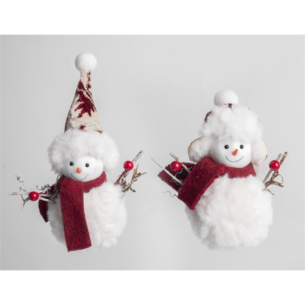 Iris textil akasztós hóember fehér / bordó 12cm