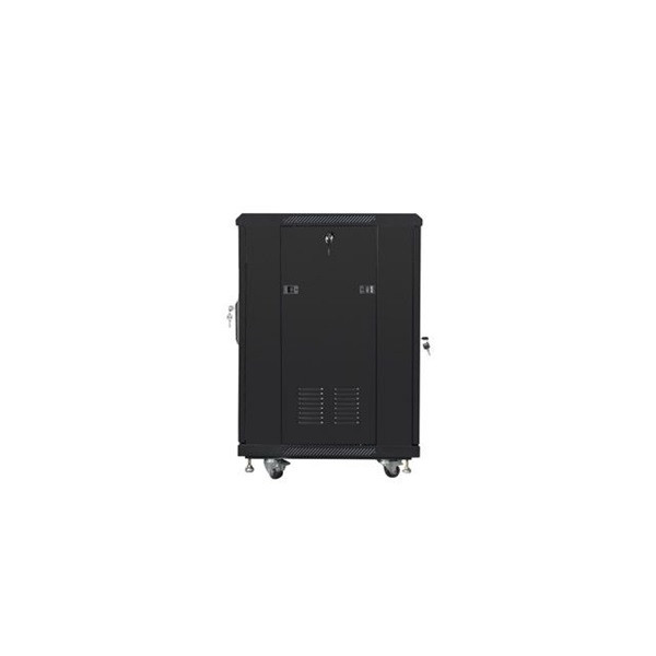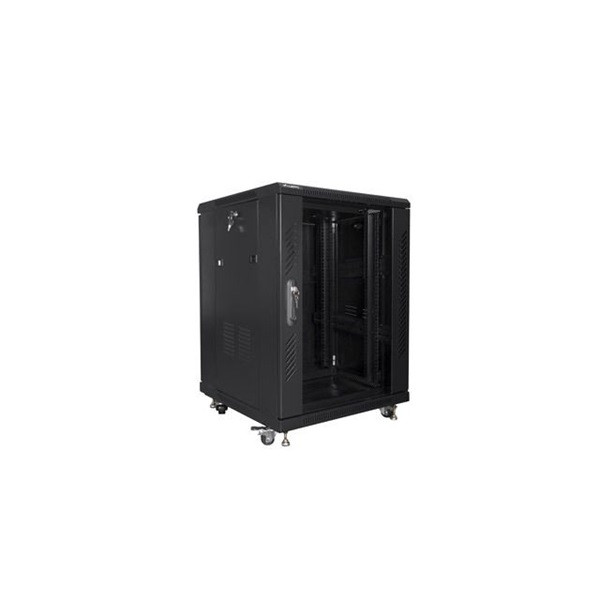 Lanberg FF01-6615-12B 19" 15U SZÉL:600mm MÉLY:600mm MAG:848mm lapraszerelt üvegajtós fekete rack szekrény