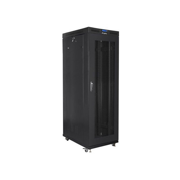 Lanberg FF01-8042-23BL 19" 42U SZÉL:800mm MÉLY:1000mm MAG:2097mm lapraszerelt LCD hálós fémajtós fekete rack szekrény