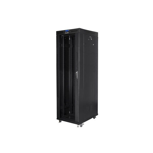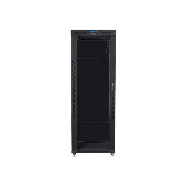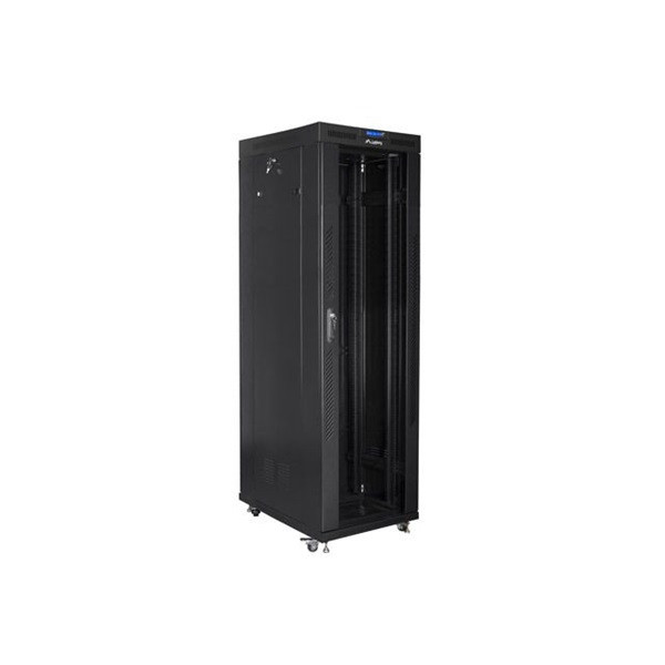 Lanberg FF01-8842-12BL 19" 42U SZÉL:800mm MÉLY:800mm MAG:2097mm LCD lapraszerelt üvegajtós fekete rack szekrény
