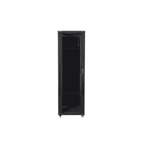 Lanberg FF01-8842-12B 19" 42U SZÉL:800mm MÉLY:800mm MAG:2047mm lapraszerelt üvegajtós fekete rack szekrény