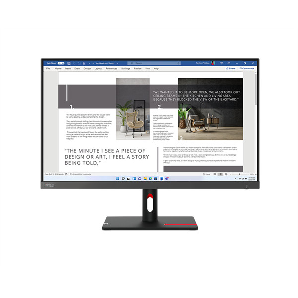 A vékony keret és az elegáns dizájn ideálissá teszi többmonitoros munkakörnyezet kialakításához is. A kompakt talp stabil elhelyezést biztosít, miközben esztétikusan illeszkedik bármilyen irodai vagy otthoni környezetbe.