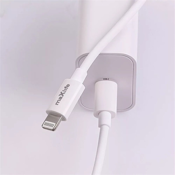 Maxlife ML738416 PD+QC 20W Type-C fehér gyorstöltő adapter + Type-C/Lightning kábel