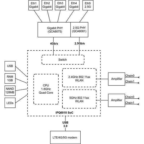 MikroTik Chateau LTE18 ax 4xGbE LAN 1x2.5G Ethernet port 1xSIM slot 802.11ax Dual-Band Vezeték nélküli Wi-Fi6 LTE router