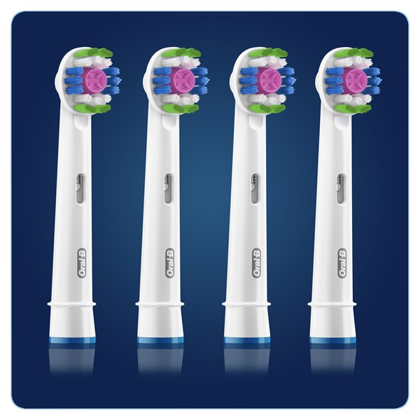 Az Oral-B elektromos fogkefékhez készült prémium minőségű 3D White pótfej exkluzív polírozófeje a felületi elszíneződések eltávolításával már az 1. naptól kezdve kíméletesen fehéríti a fogakat. A továbbfejlesztett Oral-B 3D White fogkefefej CleanMaximiser technológiával rendelkezik, amely a zöld sörtéket sárgává változtatja, az optimális teljesítmény biztosítása és a kiváló tisztítás érdekében. A különleges sörték eltávolítják a lepedéket, és alaposabban tisztítják meg a fogakat, mint az Oral-B manuális fogkefék. A Pulsonic & iO kivételével minden Oral-B fogkefemarkolattal használható.