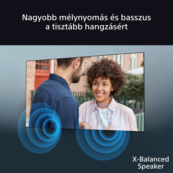 A tiszta hang a legfontosabb. A hagyományos tévéhangsugárzókkal ellentétben, amelyek elmosódottá tehetik a hanghullámokat, az X-Balanced Speaker™ hangsugárzó egyedi formájú membránja csökkenti a torzítást a jobb hangfelbontás érdekében.