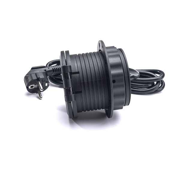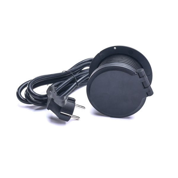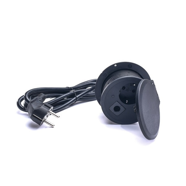 TOO GPS-105-1B IP20,1x 2P+F,USB-A,Type-C,Qi- töltés,kábelkiv.,fekete asztalba süllyeszthető elosztó