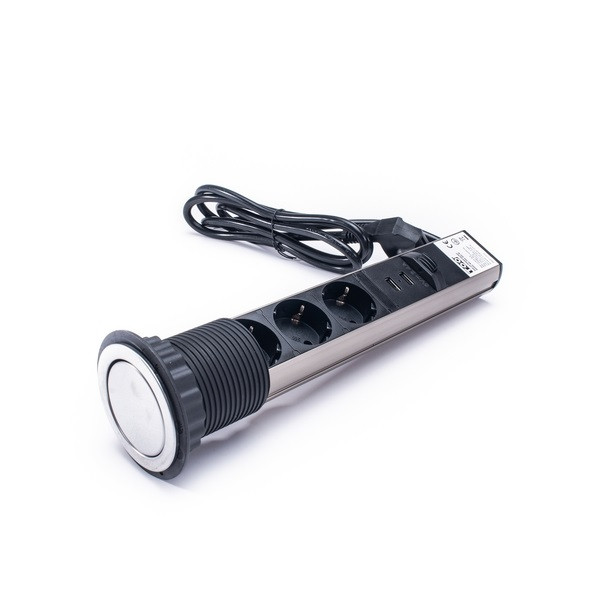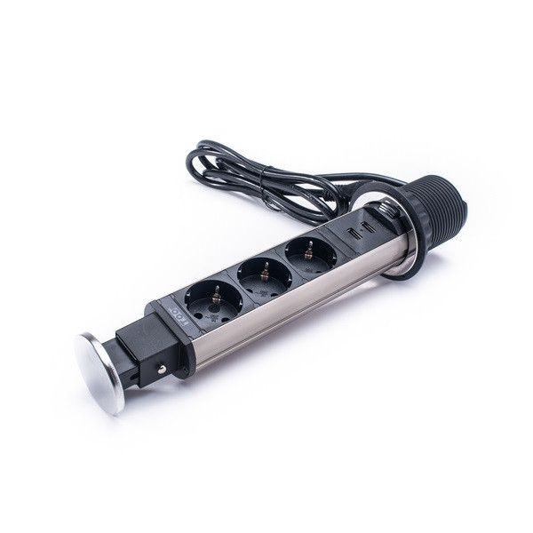TOO PPS-305-3C IP20, 3x 2P+F, 2x USB-A, króm asztalba süllyeszthető elosztó