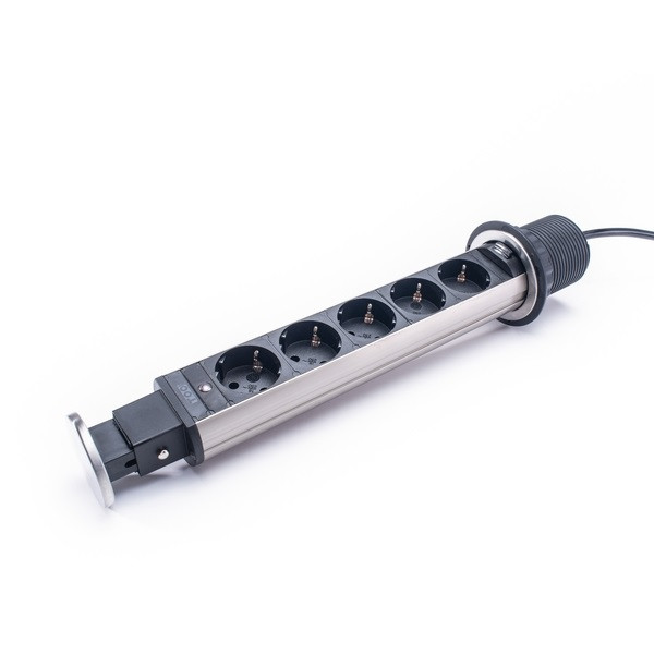 TOO PPS-311-5BR IP20, 5x 2P+F, szálcsiszolt asztalba süllyeszthető elosztó